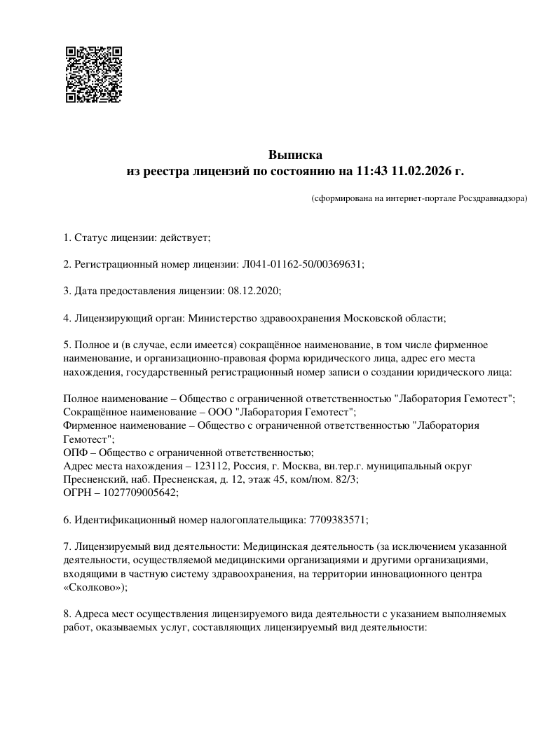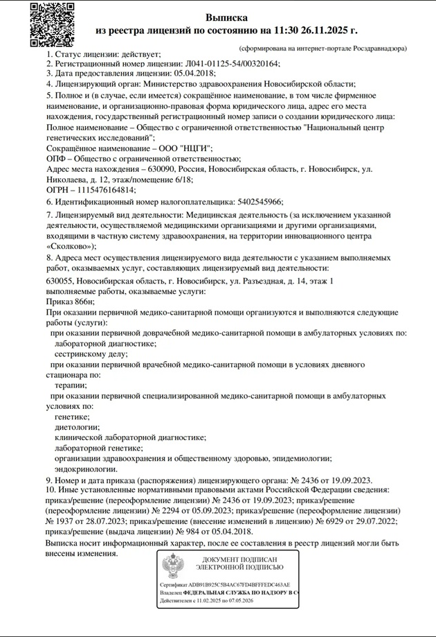 Молекулярно-генетический центр «ДТЛ» является официальным представителем лаборатории ООО «ИнЛаб Генетикс» («InLab Genetics») в Острове. Все ДНК тесты проводятся на основании медицинской лицензии: № Л0-41-01148-78/00644845 от 23.03.2023 г..